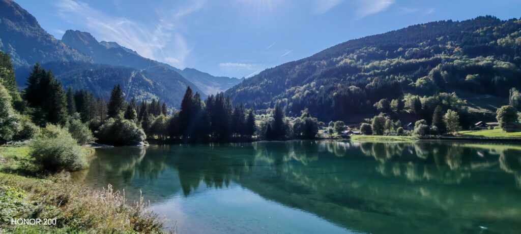 Redescendre jusqu’à Grange de Naime puis lorsque vous arrivez au hameau de la Martinette partez sur votre droite ↗️ en direction de “Maison de la Nature” et “l’Epicéa » afin de faire le tour du lac pour admirer ses magnifiques reflets en camaïeu de bleu et de verts 🤩 tout le long du parcours.