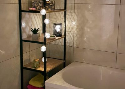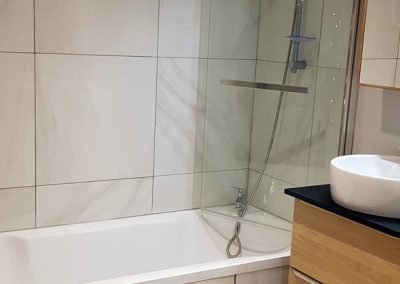 Décor marbre, baignoire 180cm pour de vrais moments détente, double vasque, lave-linge et sèche-linge. Même les nécessaires de toilette et le sèche-cheveux vous attendent !