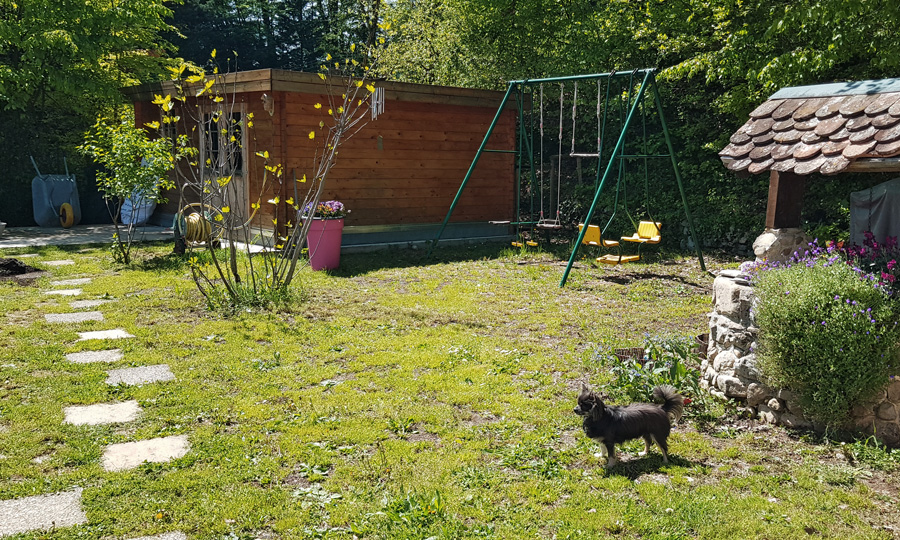 • Grand jardin arboré clôturé semi-ombragé, parfait pour vos chiens